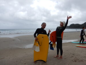 かつてはブギーボードとも言われていたボディボード。メンバーの中にも若い頃やっていた方も多いです。サーフィンに比べて簡単なので50代や60代の方でも気軽に始められます。あの波をテイクオフできた時の快感は何ともいえないですね。